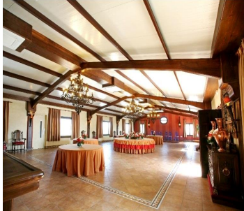 It is also worth mentioning that the estate is surrounded by wonderful and well-kept gardens. Swimming pool with night lighting 12 m × 6 m (depth 2.5 m), porch for 250 people, open bar. In the central courtyard there is a beautiful private chapel with elements of the 19th century, with exquisite colours and unique shades.