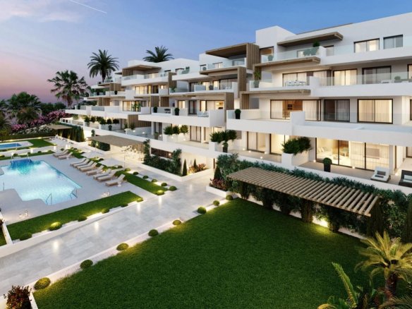 This apartment development is a new-build residential development with 3 Flats in the unique setting of Estepona (Málaga). Excellent location near schools, sports centers and wellness centers. This contemporary development has residences with 1 to 4 bedrooms, large patios and top quality finishes. In addition, they have security controls, garage, storage room, elevator, beautiful garden area, paddle tennis court, children’s pool and community pool. The unparalleled urban icon of Estepona at your fingertips, with spacious, bright, and exclusive spaces.