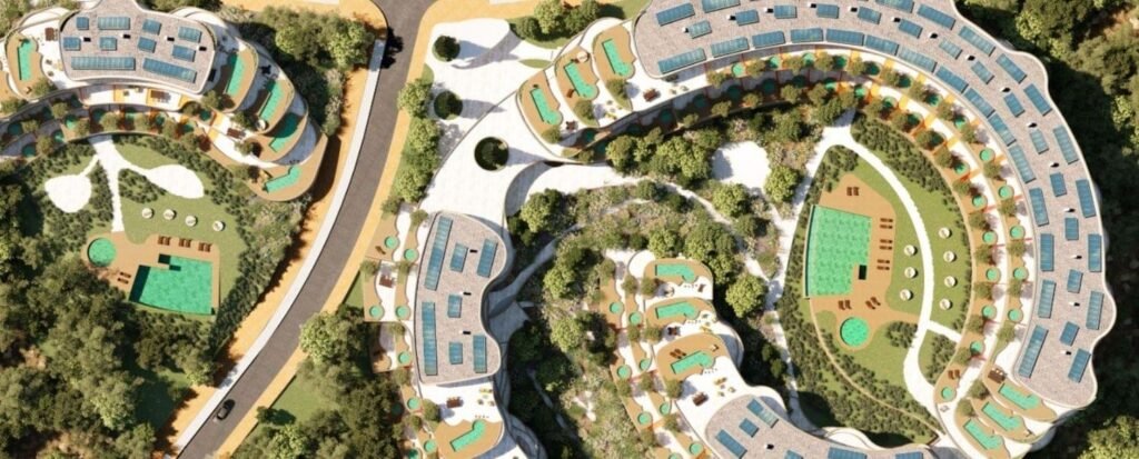 The design of Residencias Sur is inspired by the Hotel Higuerón, since it follows the same avant-garde line and uses sustainable materials such as corten steel, stone and wood. Art is a fundamental pillar of this project. The owners will live surrounded by exclusive gallery type exhibitions with orchard areas. Furthermore, the 4 blocks bear the names of famous contemporary artists such as Leiro, Brinkmann, Darko and Alphil.
