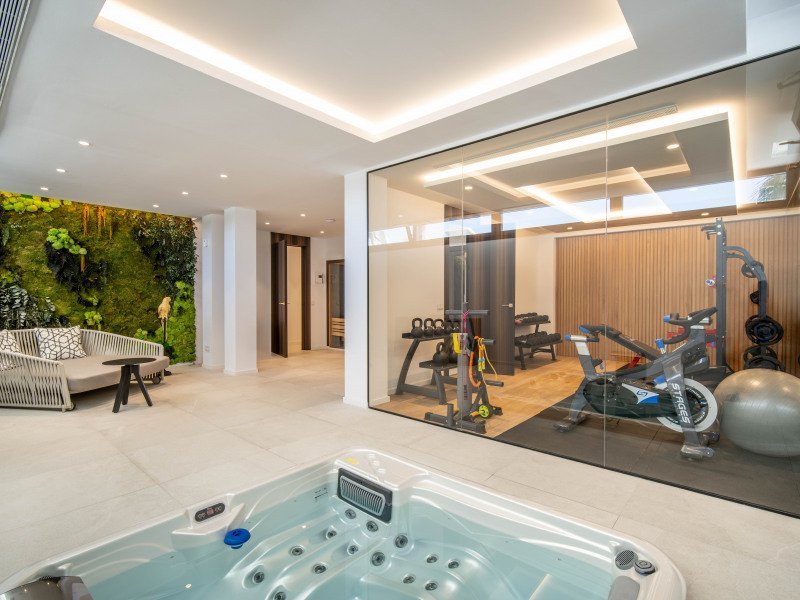 Discover an exquisite villa nestled in the coveted enclave of Nueva Andalucia, boasting ultra-modern architecture and a privileged southwest orientation that bathes its interiors in sunlight while offering panoramic vistas of the Mediterranean Sea.