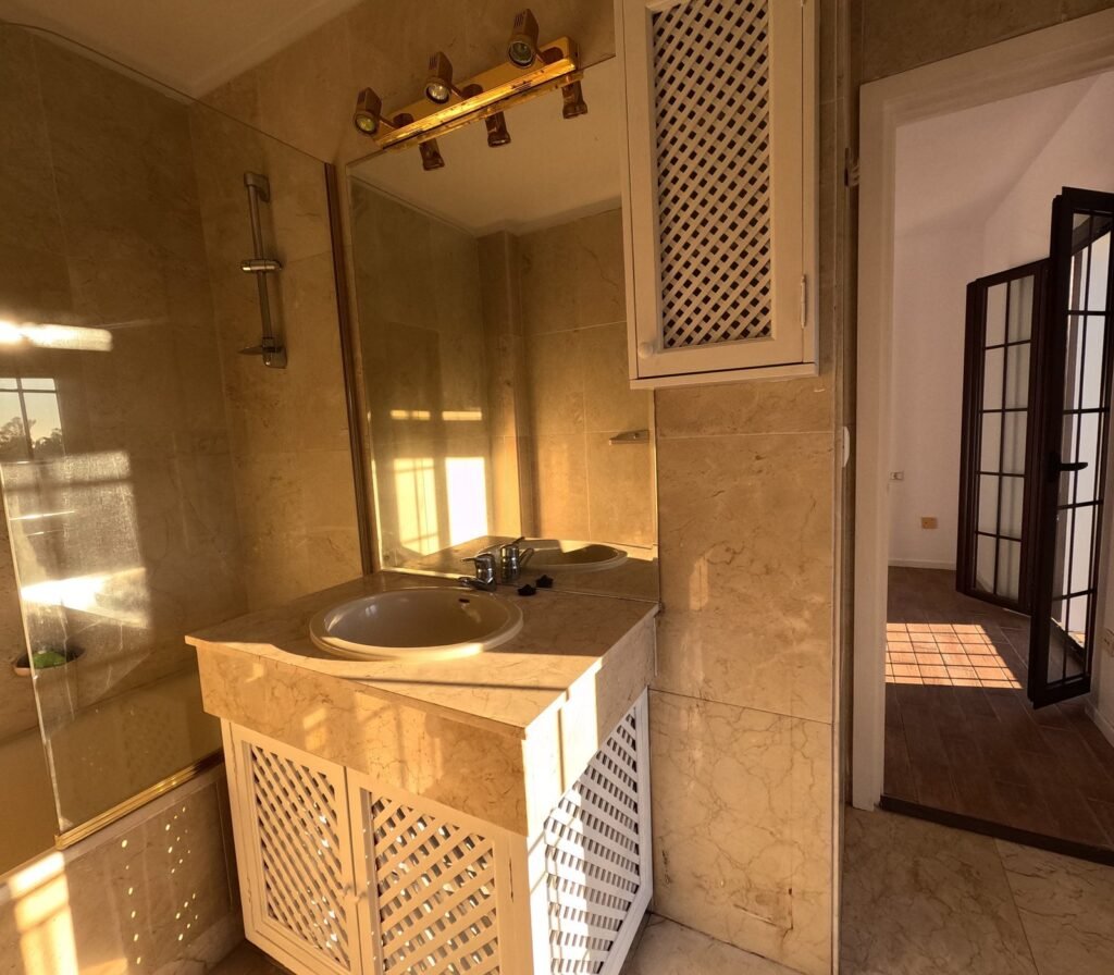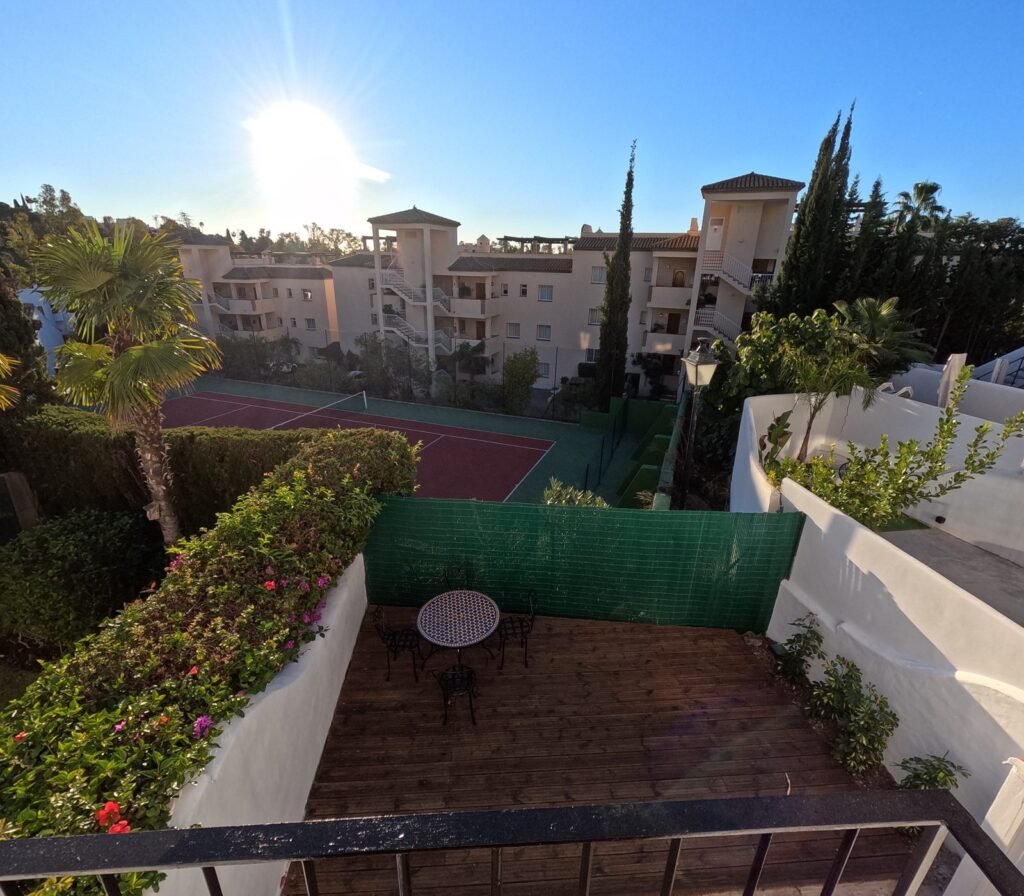 Take a look at this attached house in Nueva Andalucía. It has 2 bedrooms and 2 bathrooms, with one being attached to the bedroom. This place is a great investment opportunity with good rental potential.